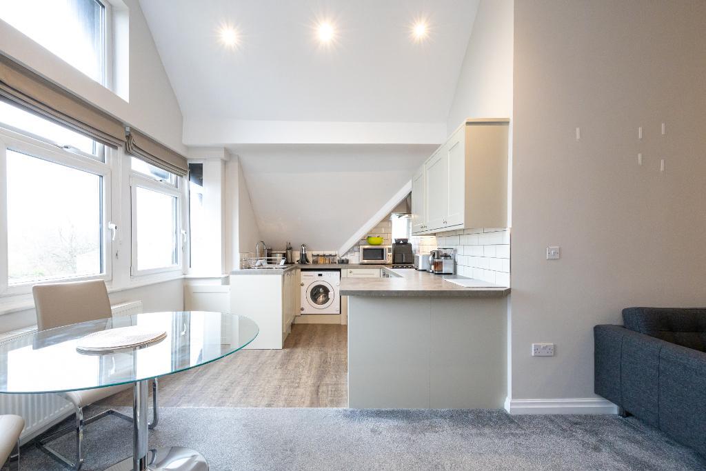 The accommodation comprises communal stairs and landing leading to the front door, entrance hall with doors to bedroom one, bedroom two, family bathroom and open plan living/dining/kitchen.