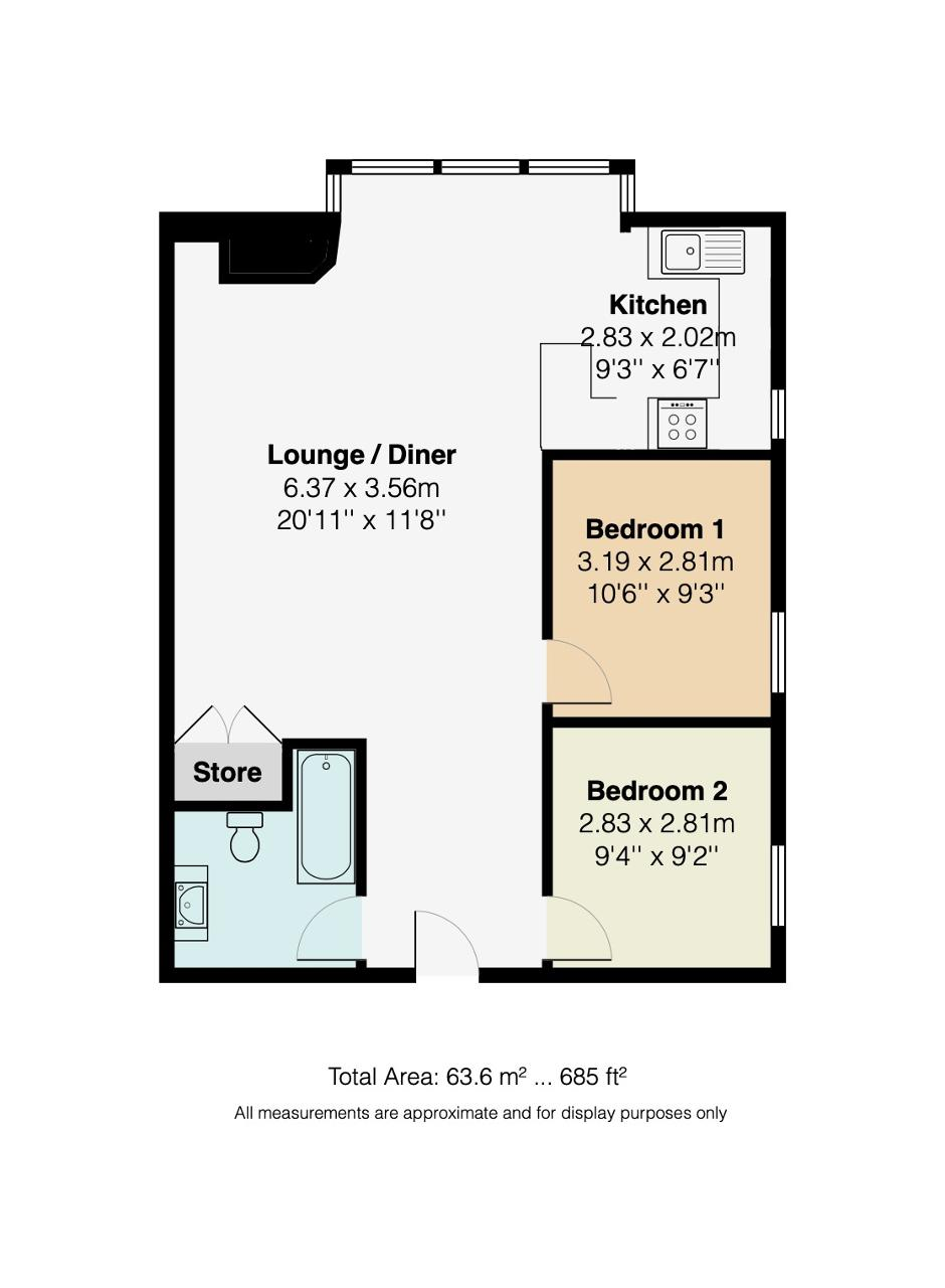 The accommodation comprises communal stairs and landing leading to the front door, entrance hall with doors to bedroom one, bedroom two, family bathroom and open plan living/dining/kitchen.