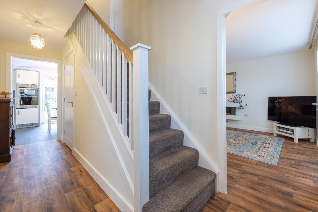 To the first floor there are four well-proportioned bedrooms served by a stylish family bathroom and storage space. The master bedroom benefits from fitted wardrobes and an en-suite.